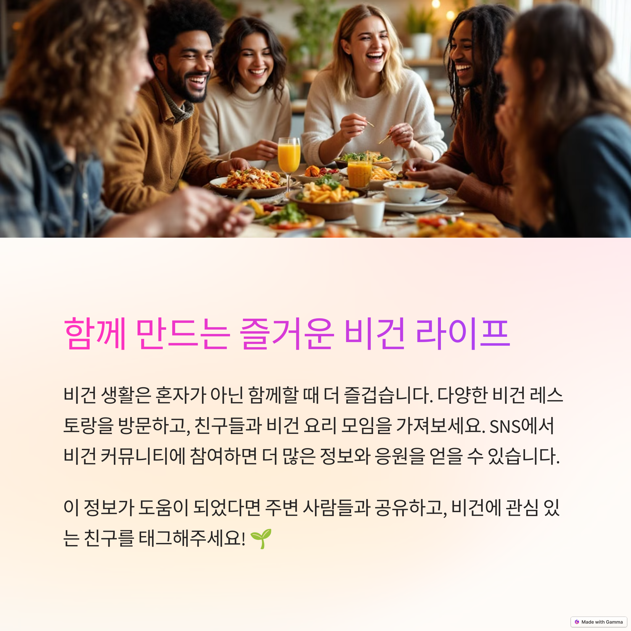 비건 식단은 단지 음식의 선택을 넘어서 환경, 윤리, 건강을 모두 고려한 삶의 태도입니다. 올바른 정보와 실천법을 갖춘다면 누구나 건강하고 지속 가능한 방식으로 비건 생활을 시작할 수 있습니다. 처음엔 낯설고 복잡하게 느껴질 수 있지만, 하나씩 실천하다 보면 자신만의 리듬을 찾을 수 있습니다. 음식이 주는 기쁨을 잃지 않으면서 몸과 마음, 그리고 지구에 긍정적인 영향을 미치는 여정을 오늘부터 함께 시작해보세요.