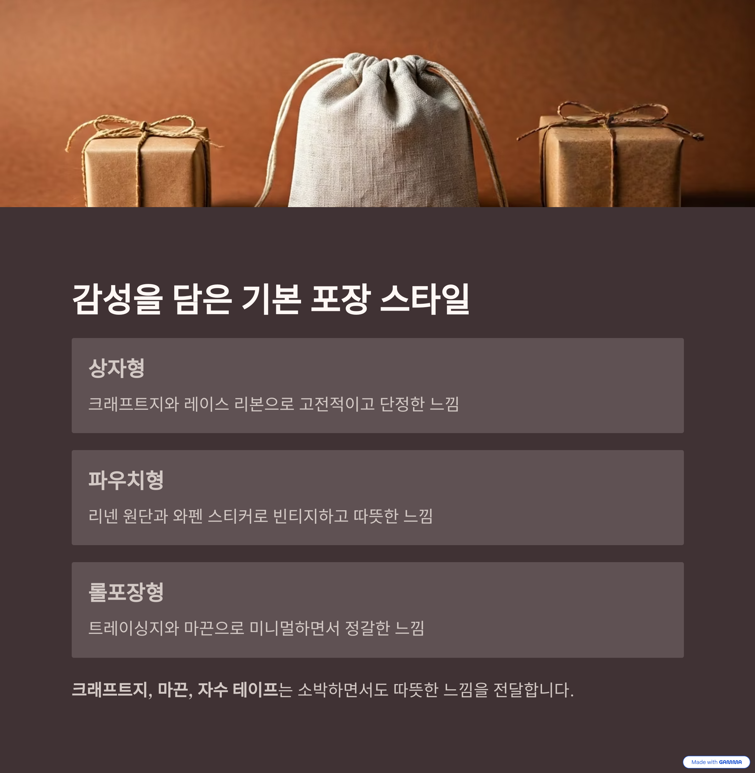 포장 자체가 선물이 되도록 만드는 것이 DIY 포장의 핵심입니다.