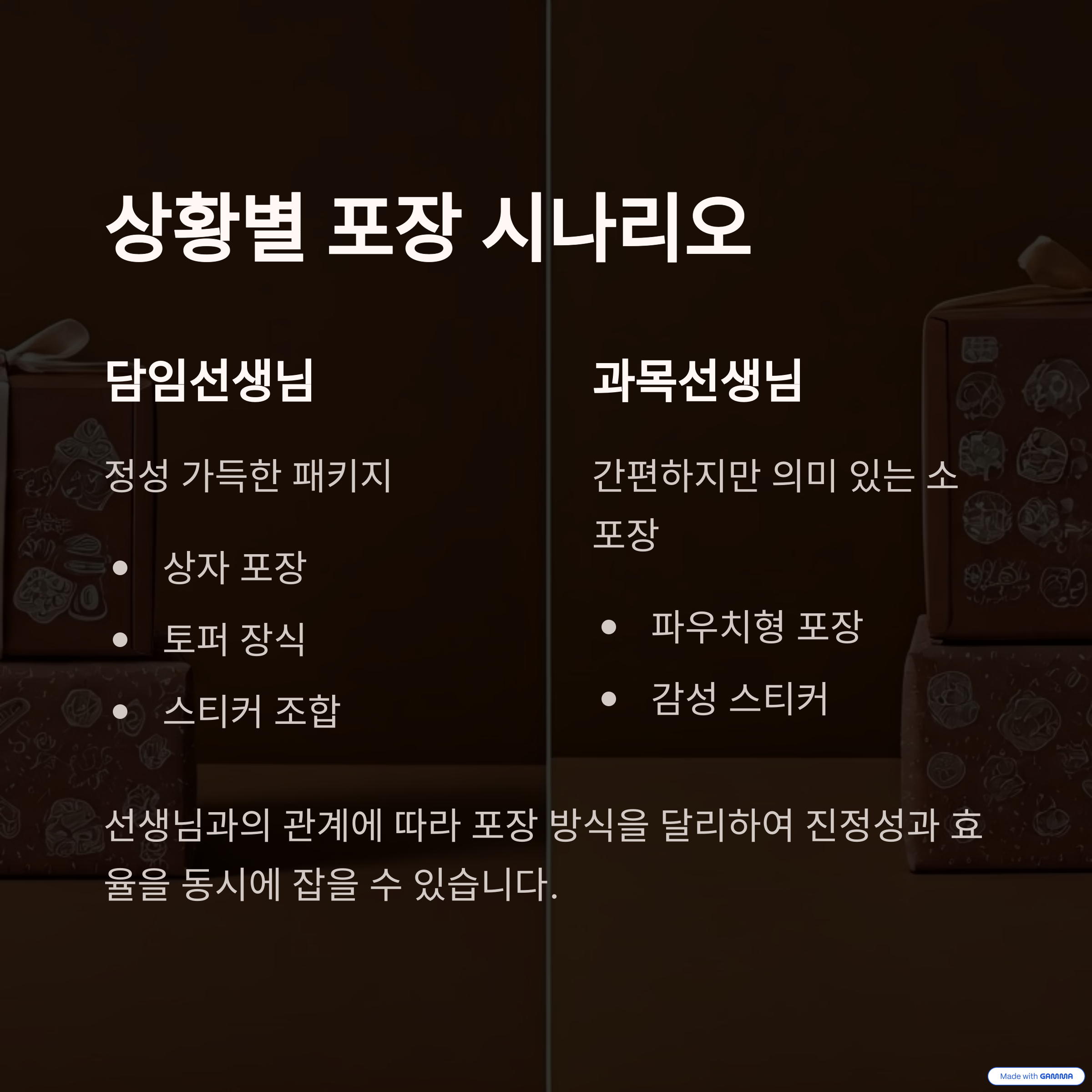 과목 선생님에게는 간편하지만 의미 있는 소포장으로 차별화하는 것도 방법입니다.