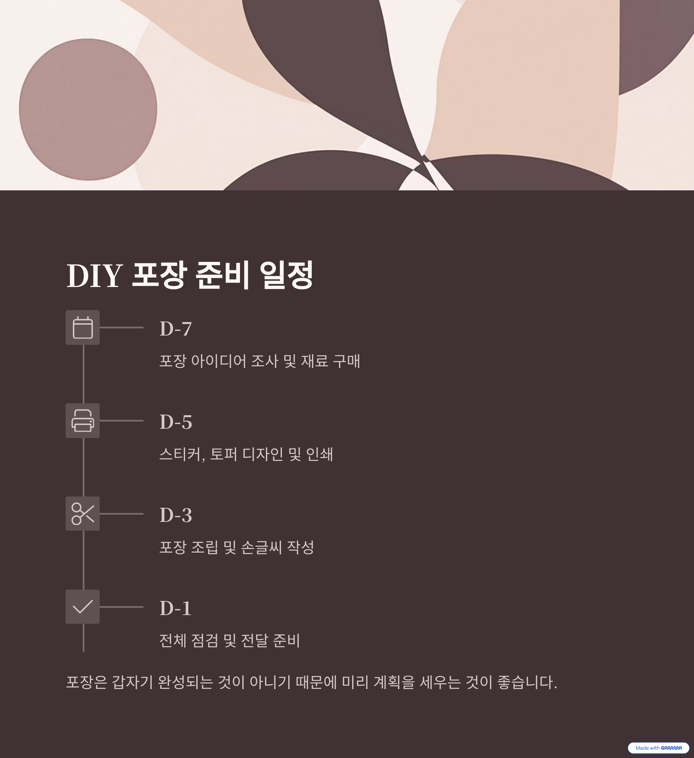 | D-7 | 포장 아이디어 조사 및 재료 구매 |