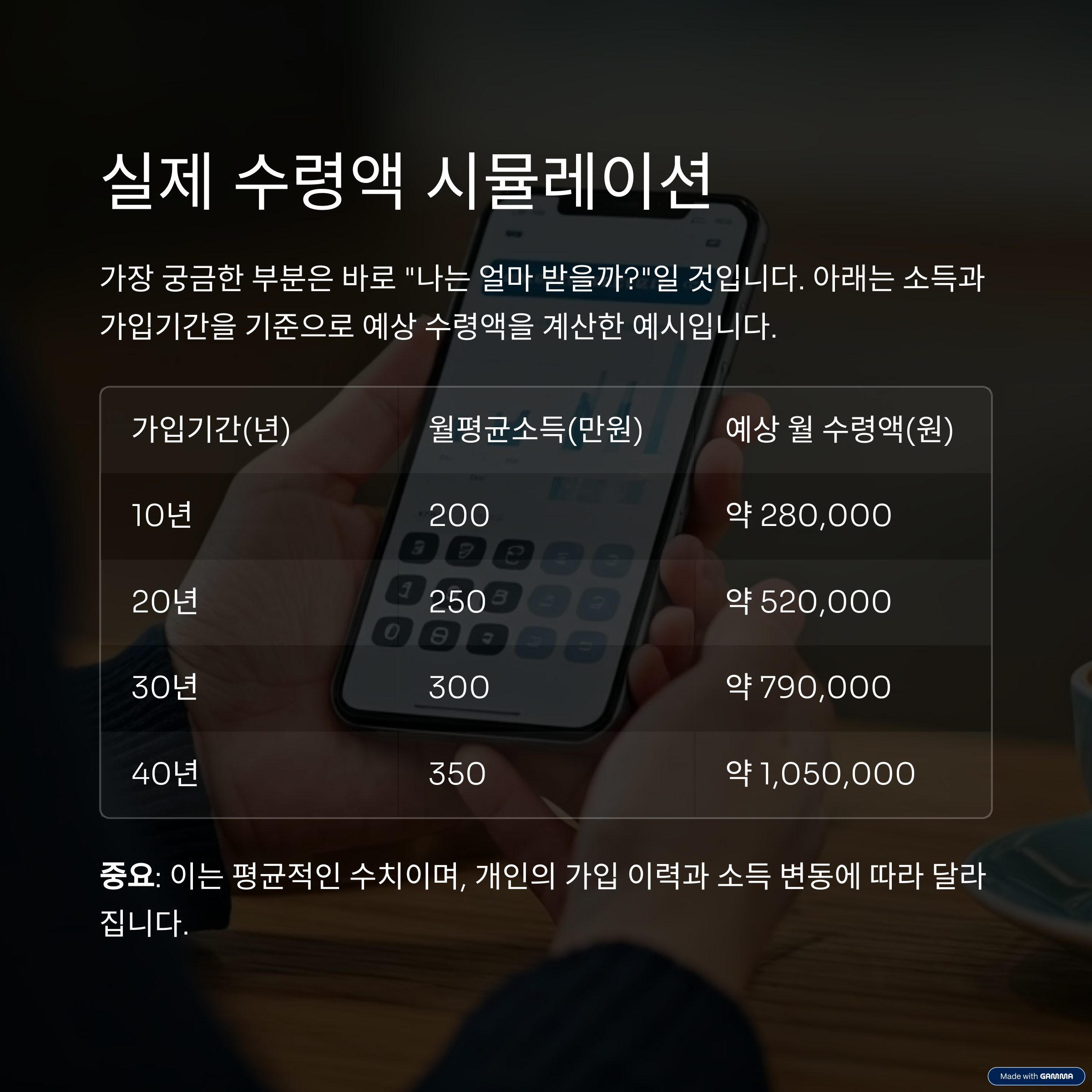 중요: 이는 평균적인 수치이며, 개인의 가입 이력과 소득 변동에 따라 달라집니다.