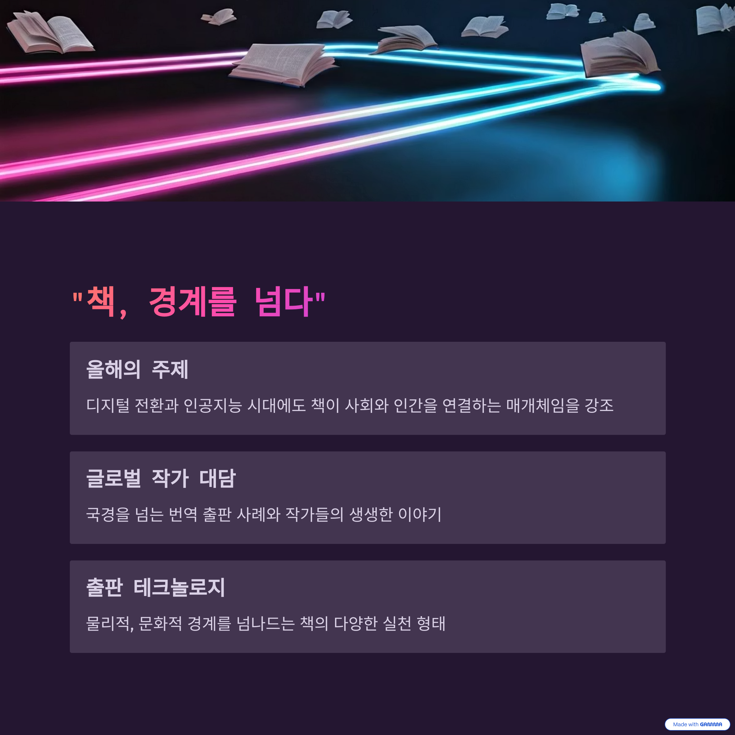 올해 도서전의 주제는 "책, 경계를 넘다"로
