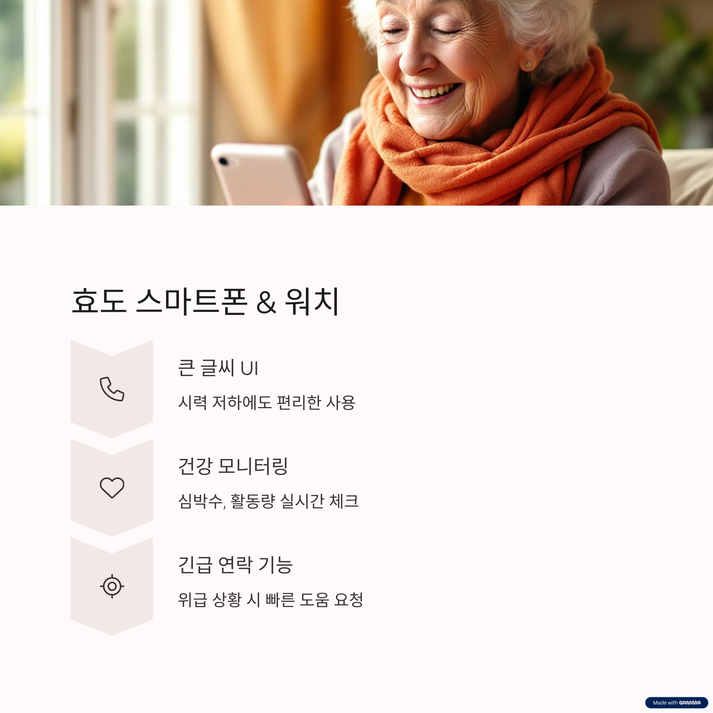 - 큼직한 화면과 쉬운 인터페이스의 스마트폰