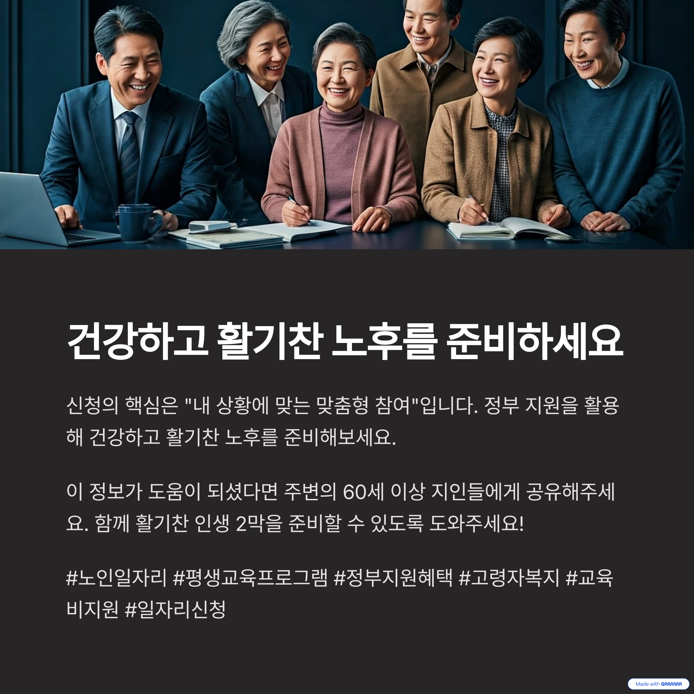 정부는 일자리와 병행하거나 별도로 노인 평생교육 지원 프로그램도 운영하고 있습니다.