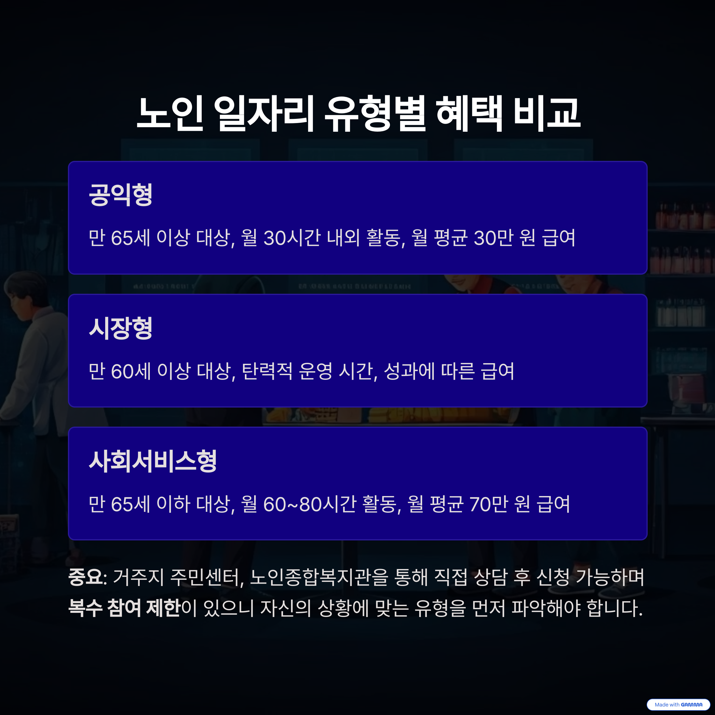 공익활동형은 만 65세 이상 기초연금 수급자에 한해 제한되기도 합니다.